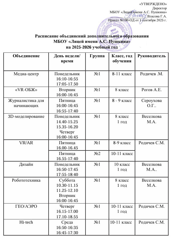 Реализация программ дополнительного образования осуществляется в соответствии с расписанием